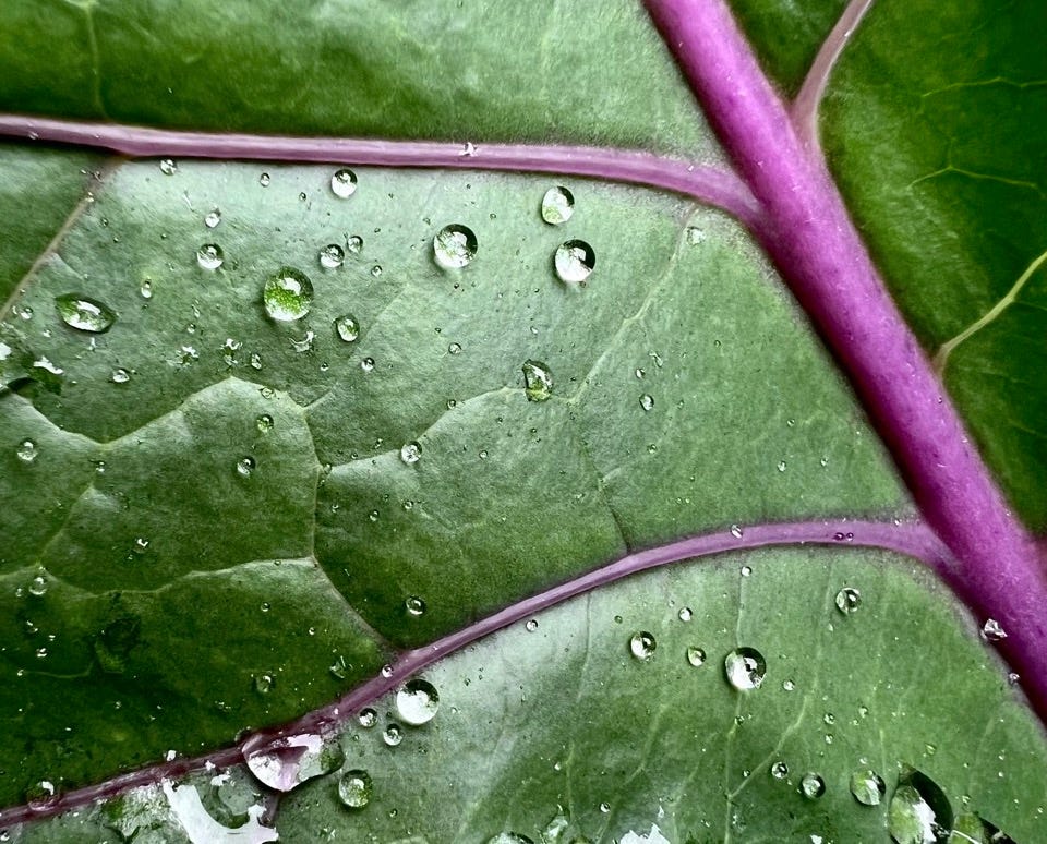 Though in this weather, delicate, frilly lettuces just won’t cut it. Something hearty is needed. But nothing so sturdy as a ‘warm salad’ - it’s not Autumn yet after all. I visit the brassica patch in hope of inspiration and find that my uncharacteristically early planting has resulted in a forest of kale, glistening with beads of recent rain and ready to pick. These first young leaves, massaged into supplication and tossed with cherries for a fresh, juicy pop, will offer just the salad for a wet summer’s day.