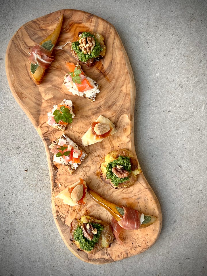 Thanks to everyone who joined me for a canapé in the greenhouse kitchen today. We proved that making nibbles to go with Christmas drinks needn’t mean vol au vents and Margot Leadbetter meltdowns. And it doesn’t have to be a faff (or a greasy cocktail sausage).