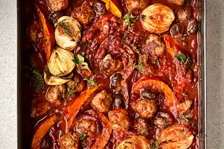 Smoky squash and chorizo meatball stew